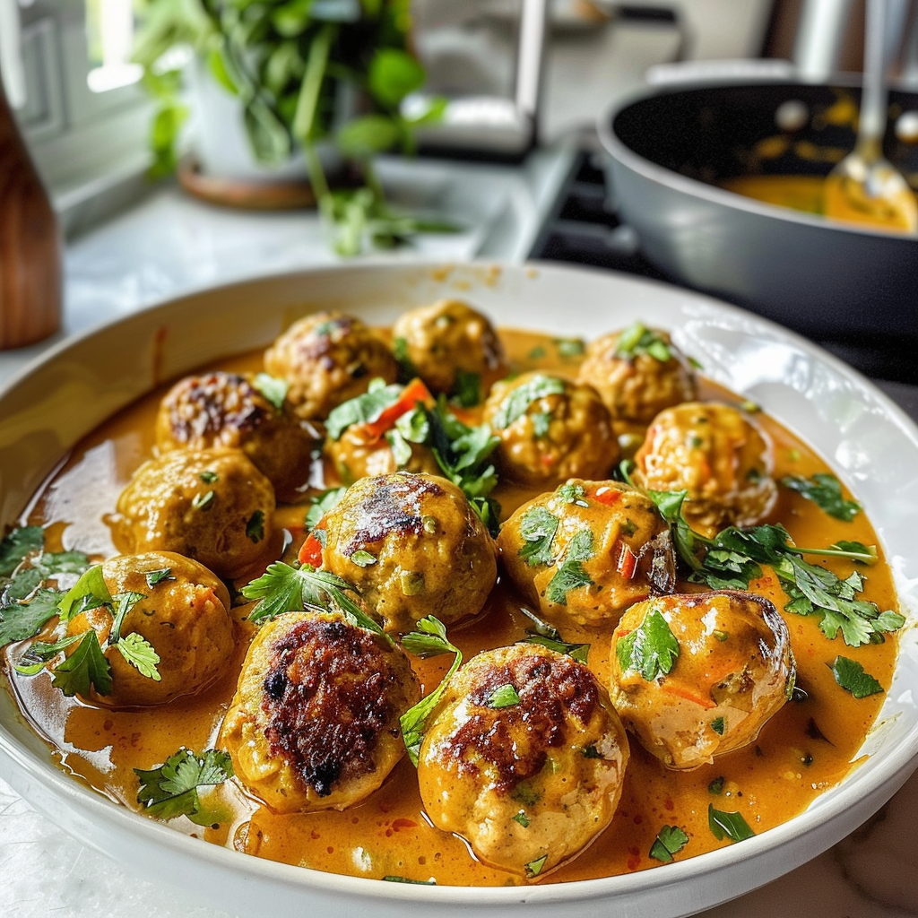 - Perfectly tender meatballs simmer in a fragrant curry, creating a dish that’s as comforting as your favorite blanket