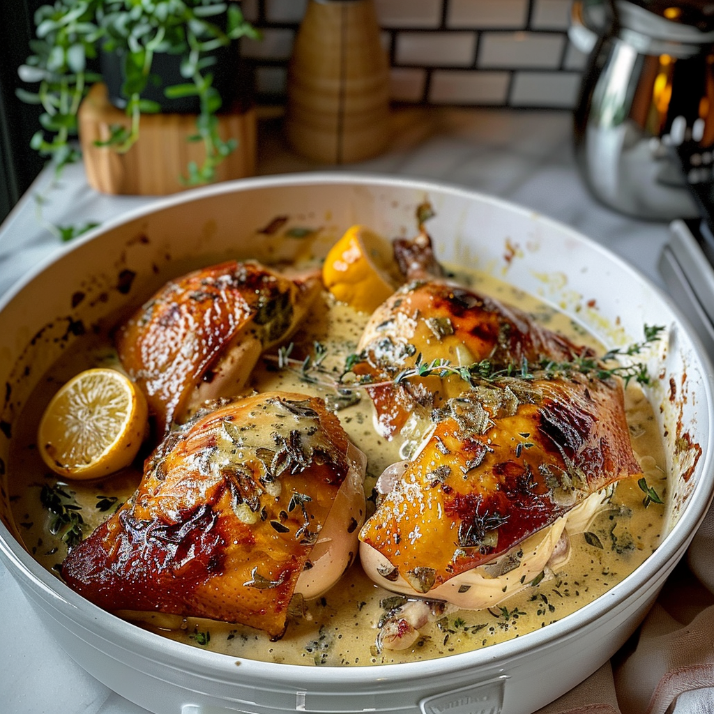 Savor Herb Roasted Chicken in Creamy White Wine Sauce