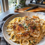 Creamy Garlic Parmesan Chicken with Spaghetti is the ultimate comfort food, combining tender chicken breast and spaghetti in a rich, velvety garlic cream sauce. Perfect for busy weeknights or special gatherings, this dish invites warmth and laughter around the dinner table. With every bite, you’ll savor the harmonious blend of flavors that transports you to an Italian trattoria. Easy to prepare yet impressive enough to serve guests, this creamy delight is sure to become a family favorite.
