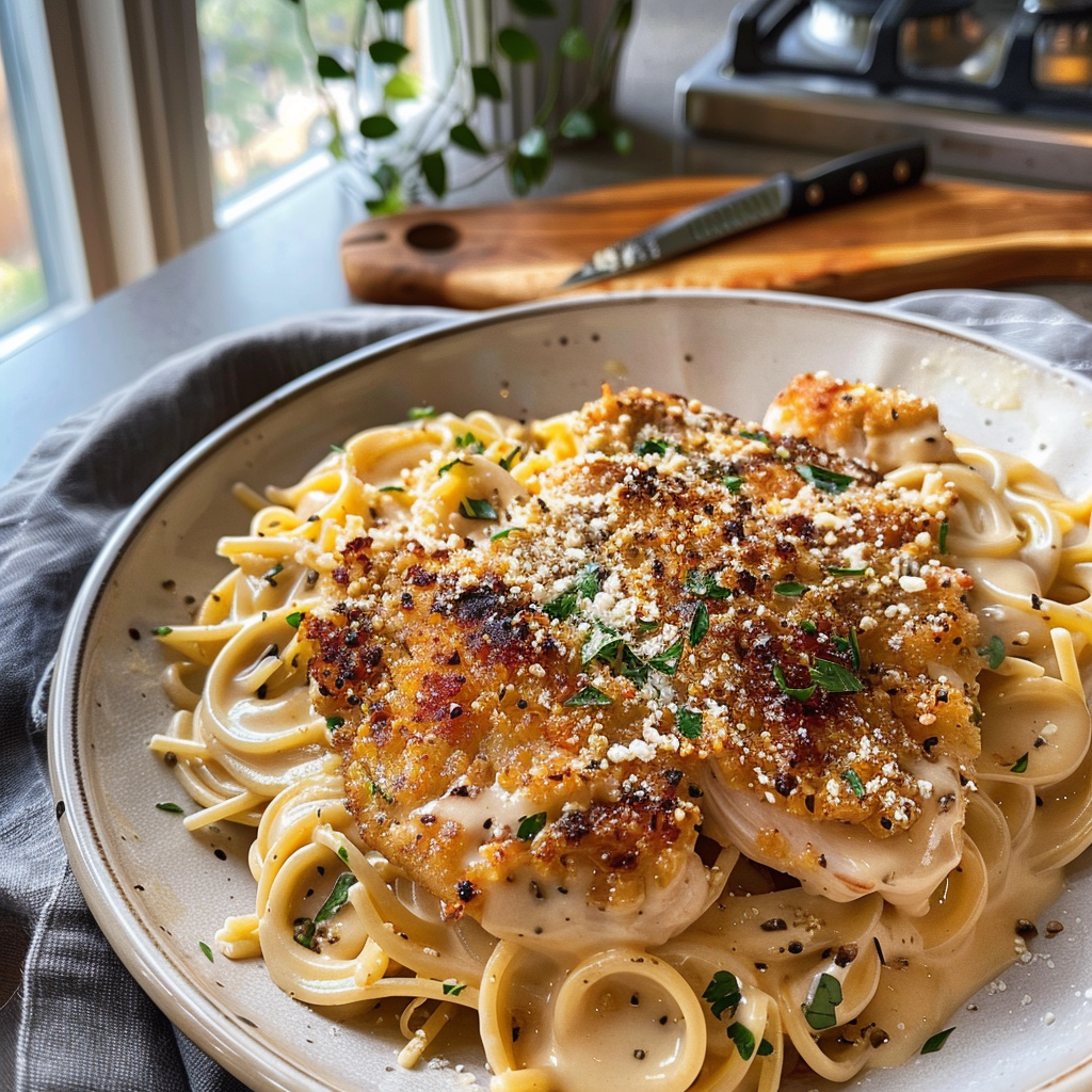 Creamy Garlic Parmesan Chicken with Spaghetti