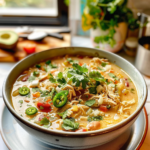 Indulge in the comforting warmth of creamy white chicken chili, a perfect blend of tender chicken, zesty green chilies, and aromatic spices. This crowd-pleasing dish is not only quick to prepare but also customizable to suit your taste buds. Ideal for chilly nights or gatherings, it’s a delightful hug in a bowl that will leave everyone craving more.