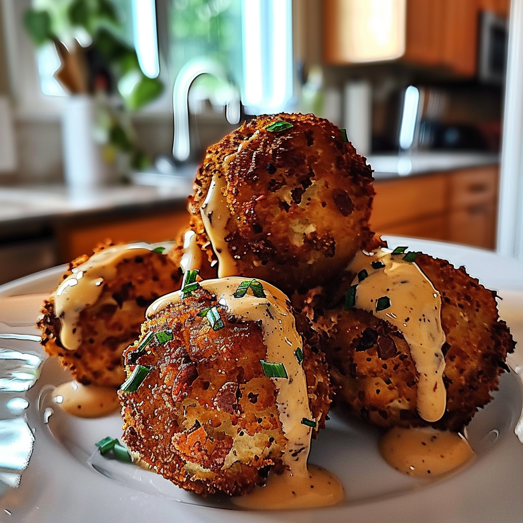 Fry Them Up: Heat Oil in Your Pan: In a deep skillet over medium heat, warm vegetable oil until shimmering. Fry the balls in batches until golden brown and crispy on all sides.