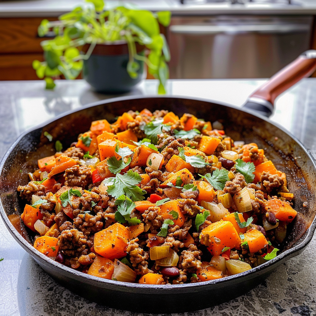 Southwestern Ground Beef Sweet Potato Skillet