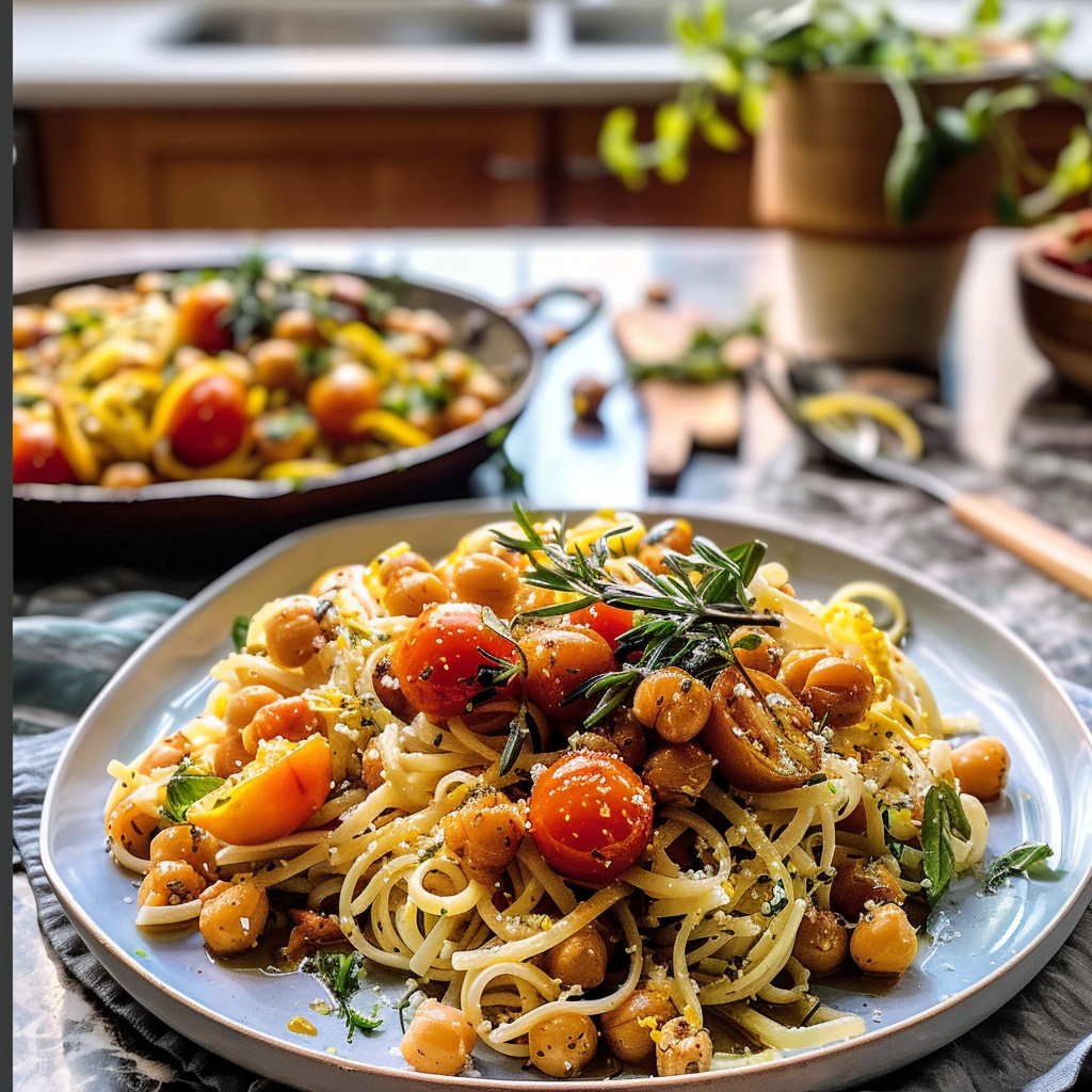 - Crispy lemon rosemary chickpeas add a unique crunch that elevates your pasta experience
