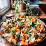 Experience the bold flavors of Buffalo Roasted Cauliflower Pizza, a delightful twist on traditional pizza. This dish features a crispy crust topped with roasted cauliflower drizzled in spicy buffalo sauce, melted cheese, and fresh herbs for a colorful and satisfying meal. Perfect for gatherings or a cozy night in, this recipe promises to wow your taste buds while keeping things healthy!